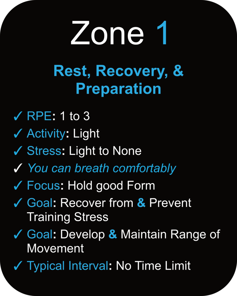 Zone 1 (Rest, Recovery, and Preparation)